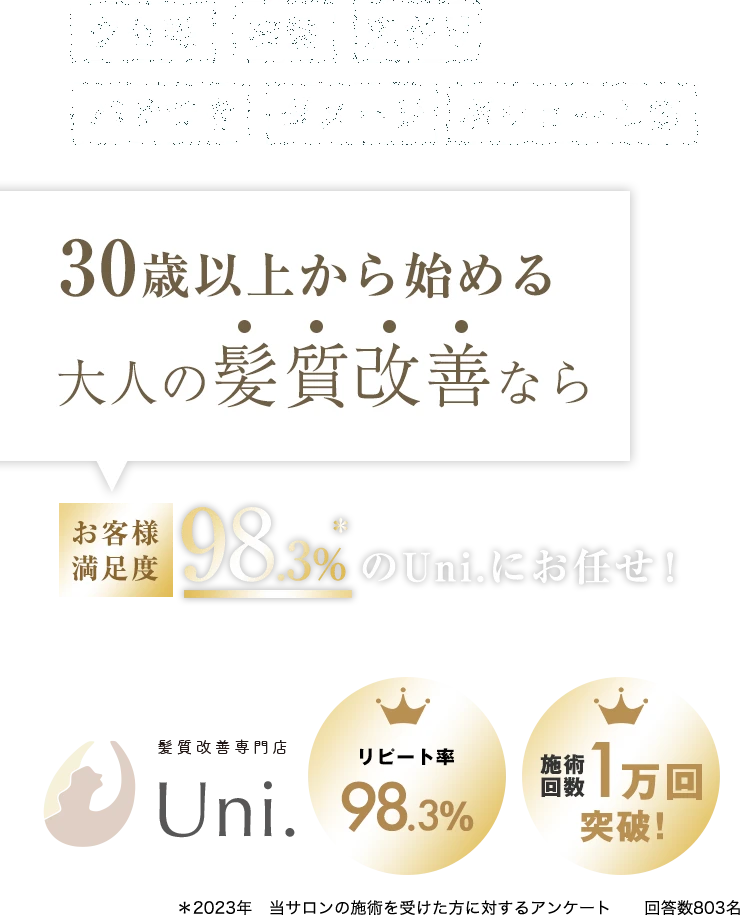 Uni.は髪質に悩む大人女性限定のサロンです。